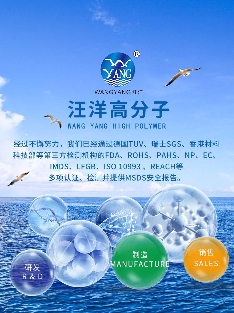 汪洋高分子創(chuàng)立于1999年,是一家集研發(fā)、制造、銷售熱塑性彈性體TPE系列:〈醫(yī)療器具用熱塑性彈性體TPE、雙色包覆料TPE、TPR、TR、TPV、TPU、TPEE、TPAE〉;聚氯乙烯PVC系列:輸血(液)器具用軟聚氯乙烯塑料、NPVC水晶透明料、TPVC彈性料、啞光料);工程塑料系列:〈聚酰亞胺PI、聚醚酰亞胺PEI、醫(yī)用透明抗低溫PP、熔噴PP專用料、PP降溫母料、醫(yī)用透明PA、PA6、PA66、PC、PC/ABS、PBT〉合金、合金電鍍級、增強(qiáng)、阻燃、增韌、填充;增韌母料系列;WYANGBIO改性生物降解塑料(PLA)系列;WYANGCLEAN螺桿清洗劑系列等產(chǎn)品的高新技術(shù)企業(yè)。